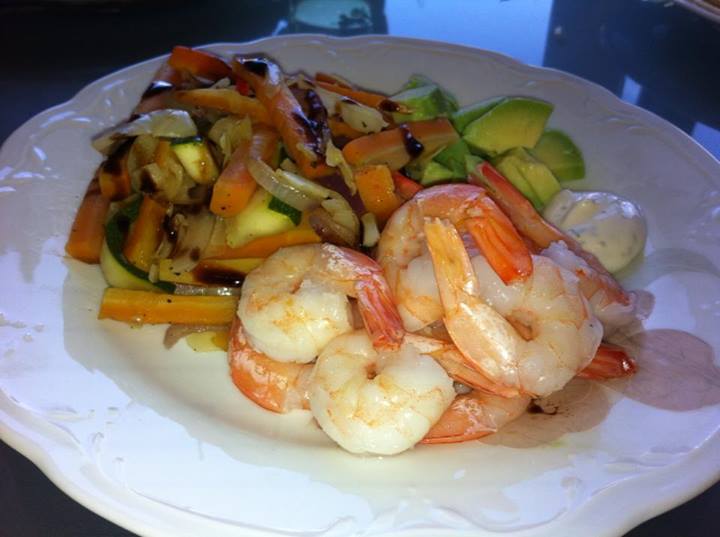 Óflokkað, Fiskréttir, KvöldmaturRisarækjur með grænmeti Steikt grænmeti Kúrbítur Gulrætur Rauðlaukur Chilly Saltverkssalt Sollu balsamik gljái yfir Risarækjur rétt hitaðar með engifer og hvítlauk. Smá niðurskorið avacado Saffran sósa til að dýfa rækjunum í Deila: Click to share on X(Opnast í nýjum glugga) X Click to share on Facebook(Opnast í nýjum glugga) Facebook Líka við Hleð... Tengt efni