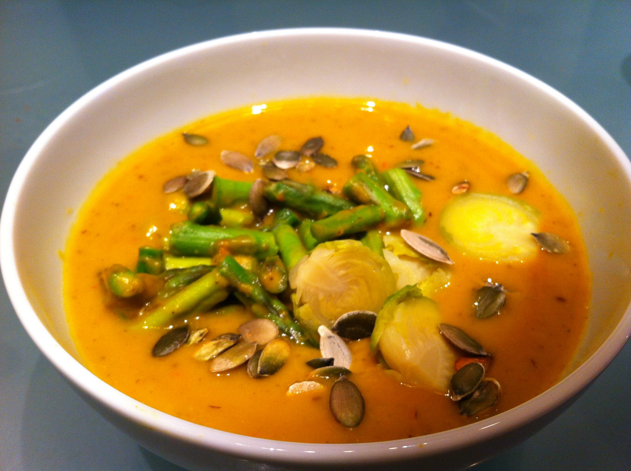 Steikti Aspasinn upp úr 2 msk. af súpunni….hitaði súpuna upp og lét í skál.