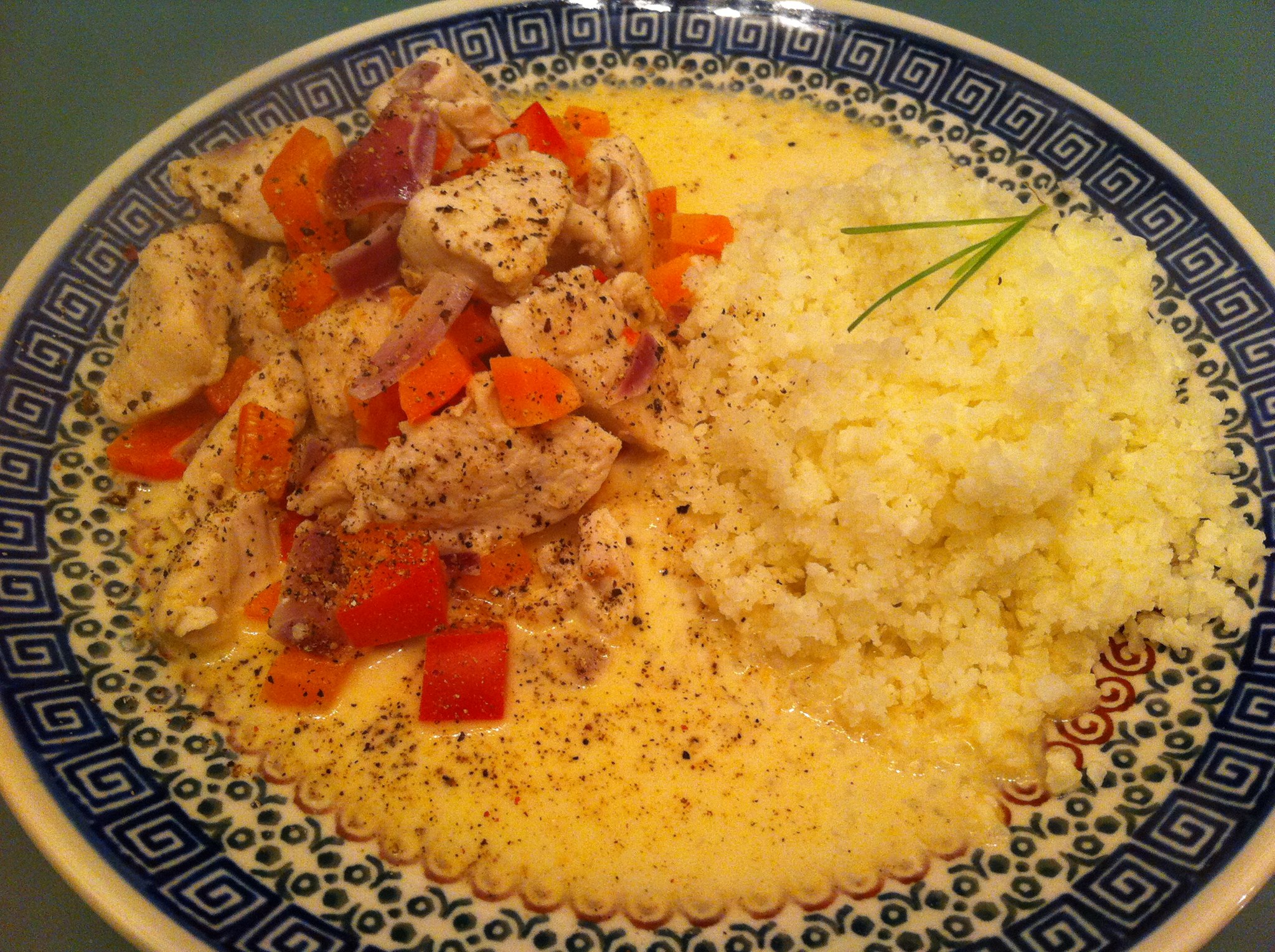 Grænmetið skorið smátt og sett út í og steikt saman ( eftir að kjúllin hefur verið steiktur einn og sér fyrst)