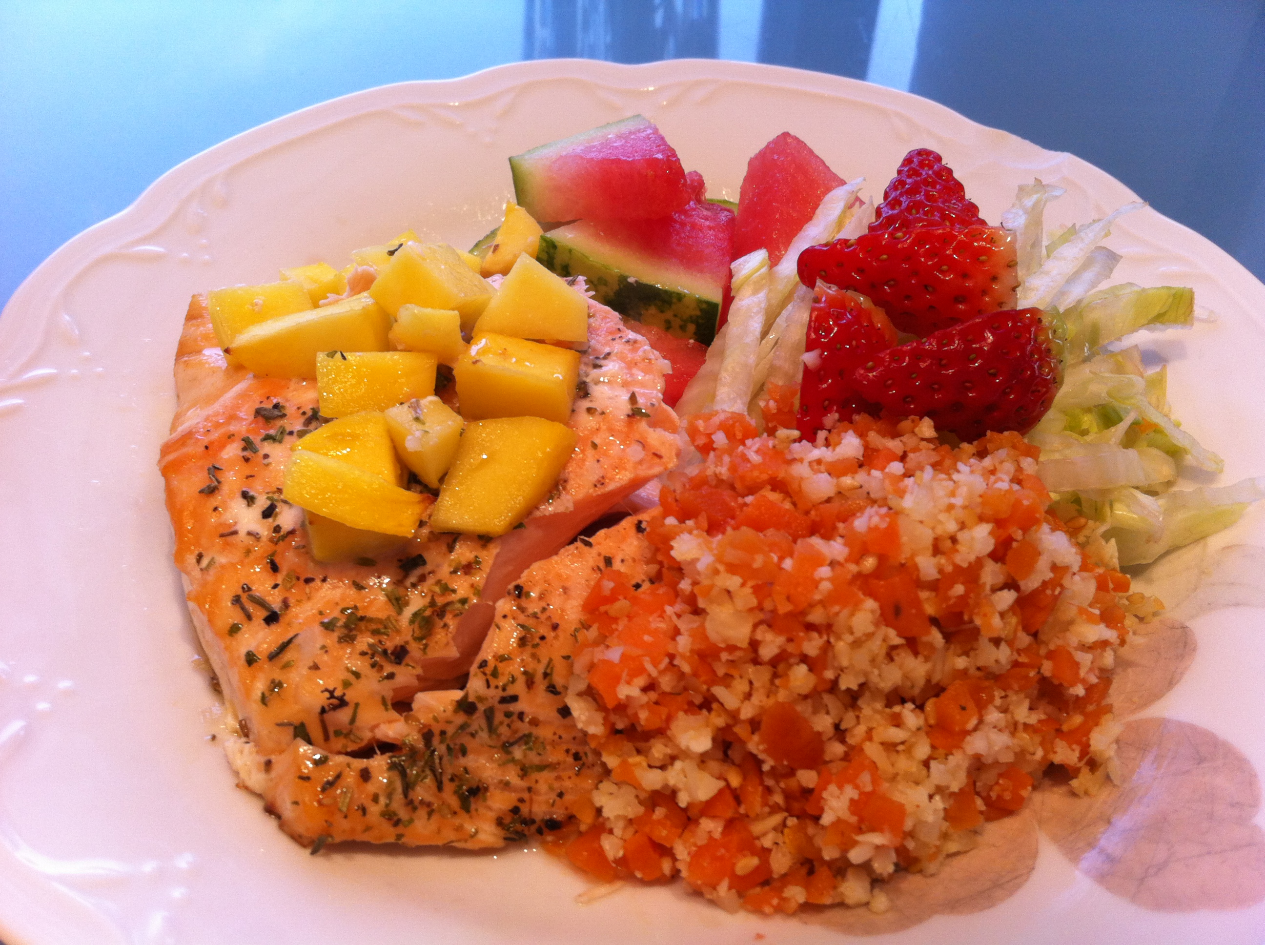 Fiskréttir, KvöldmaturKvöldmaturinn :) KvöldmaturinnOfnbakaður Lax með Mango .Kryddað með Herbes de Provence ( pottagaldrar )og grófu salti frá Saltverk.Melona-Iceberg-jarðaberGulrótarréttur með blómkálsgrjónumÞetta er minn uppáhaldsmatur. Deila: Click to share on X(Opnast í nýjum glugga) X Click to share on Facebook(Opnast í nýjum glugga) Facebook Líka við Hleð... Tengt efni