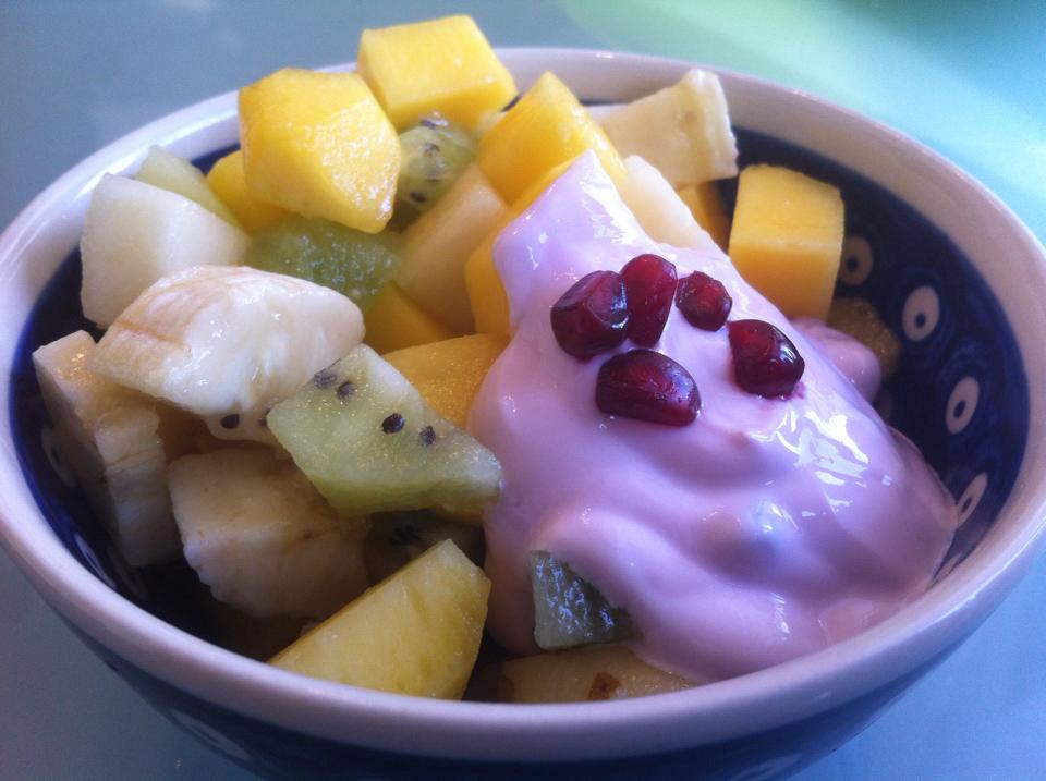 1tsk. Grísk jógúrt með Granateplum ( kreisti í jógúrtið svo þess vegna kemur þessu bleiki litur…og bragðið er æði )