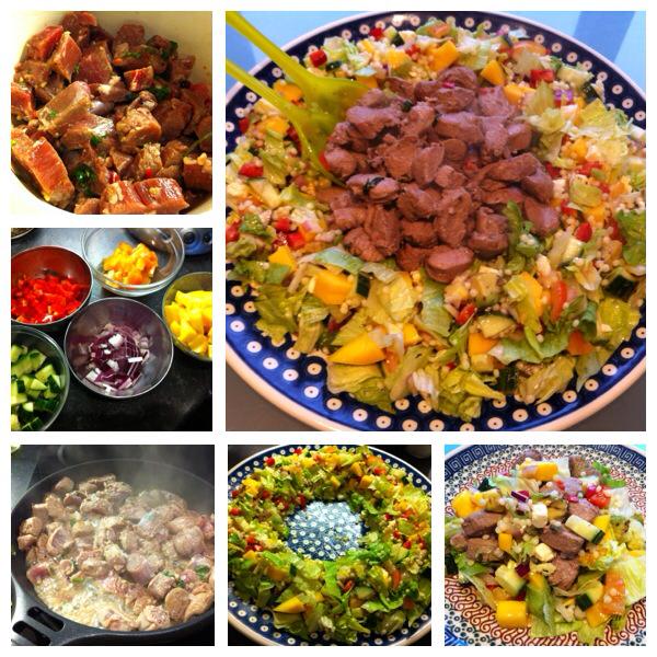 Steikja kjötið og láta í miðjuna á disknum/fatinu.