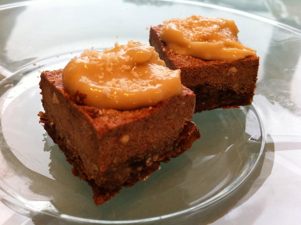 Skar svo tvo bita af kökunni setti karmellu og smá kokosmjöl yfir.