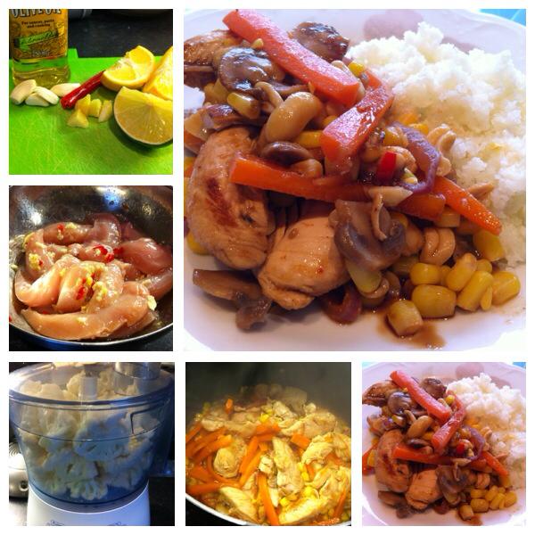Ég var með kjúklingalundir sem ég lét marenerast í nokkra klukkutíma.
