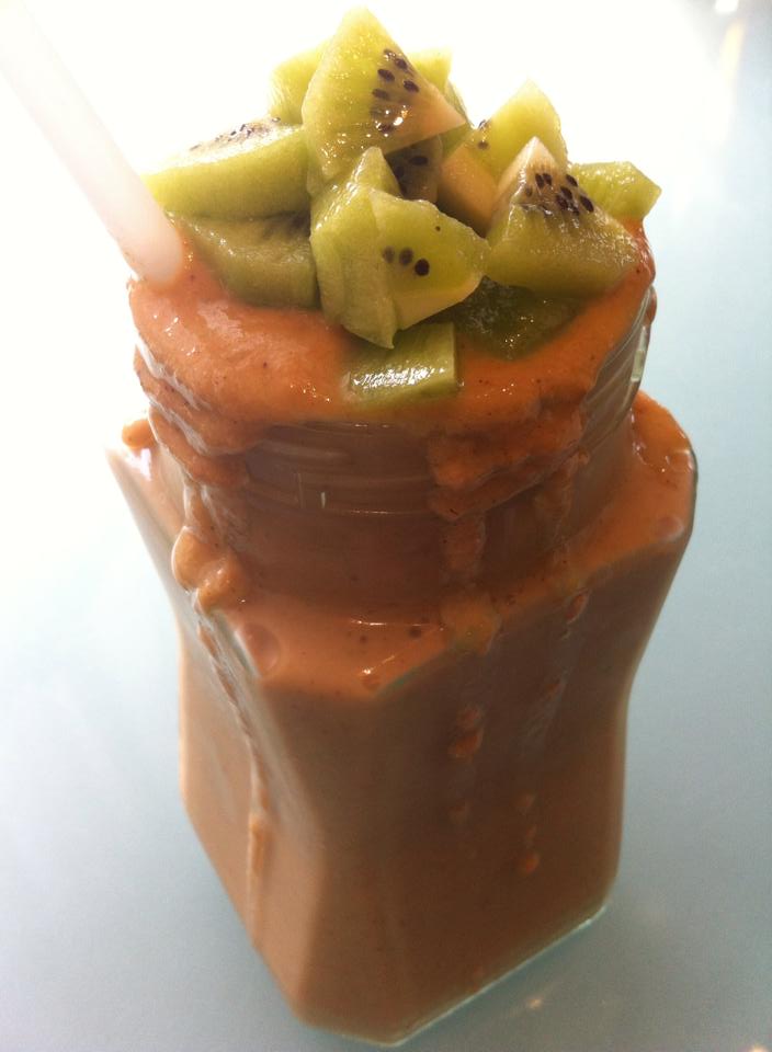 Allt í blandara og þeyta í silkimjúka blöndu…..kíví á toppinn sem nammi