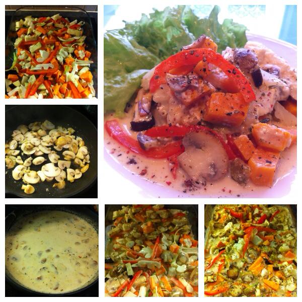 Skera allt grænmetið yfir nema taka sveppina frá.