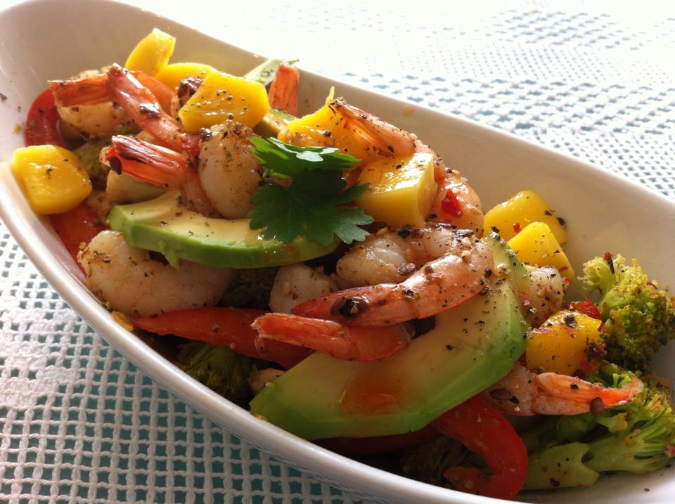 Mangóið skorið í litla bita alveg dásamlega silkimjúk og æði með Avacadói og rækjum