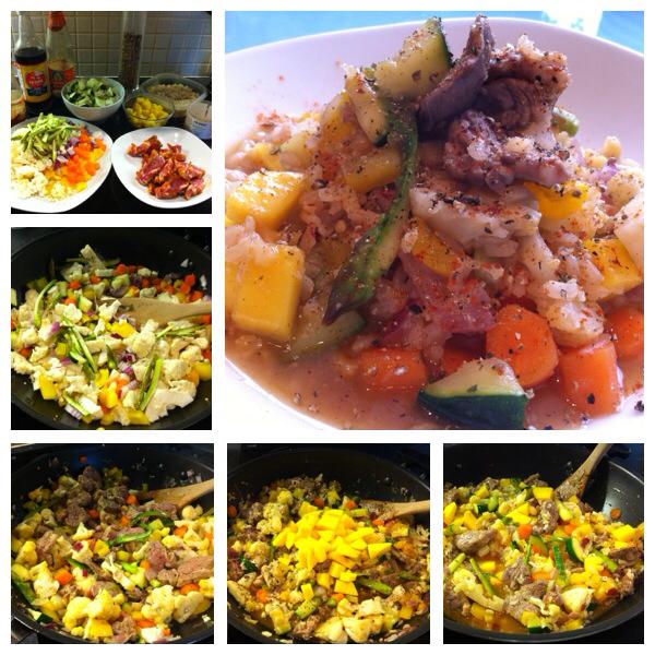 En sósurnar nota ég í alla þessa pönnu aðeins 1 msk. fish sause, 2 msk. sweet soya sause, 2 msk. sweet chilli sause síðan bara vatn og grænmetiskraft….eftir smekk .