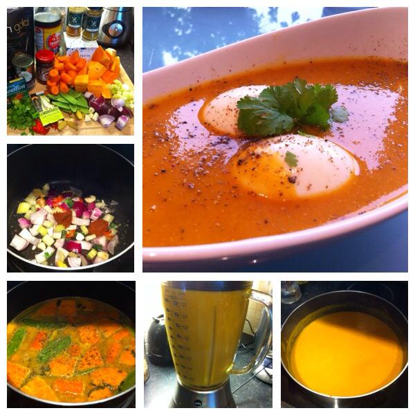 Þá setja allt í blandara eða nota töfrasprota og búa til silki mjúka súpu.