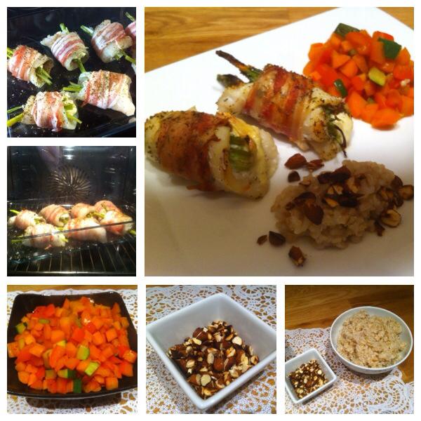Krydda fiskinn og rúlla upp með beikoni 🙂