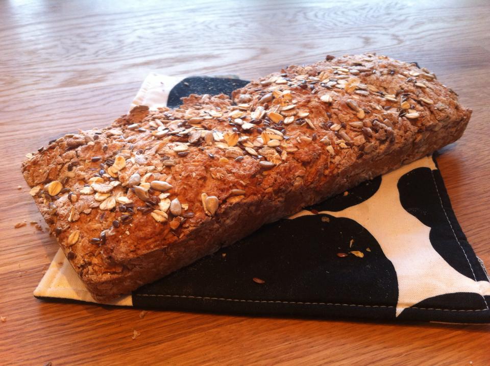 80 g haframjöl eða fræ …ég nota fræblöndu/musli sem samanstendur af tröllahöfrum-hörfræjum og sólblómafræjum ( síðan má bæta aðeins við og setja ofan á degið fyrir bökun:)