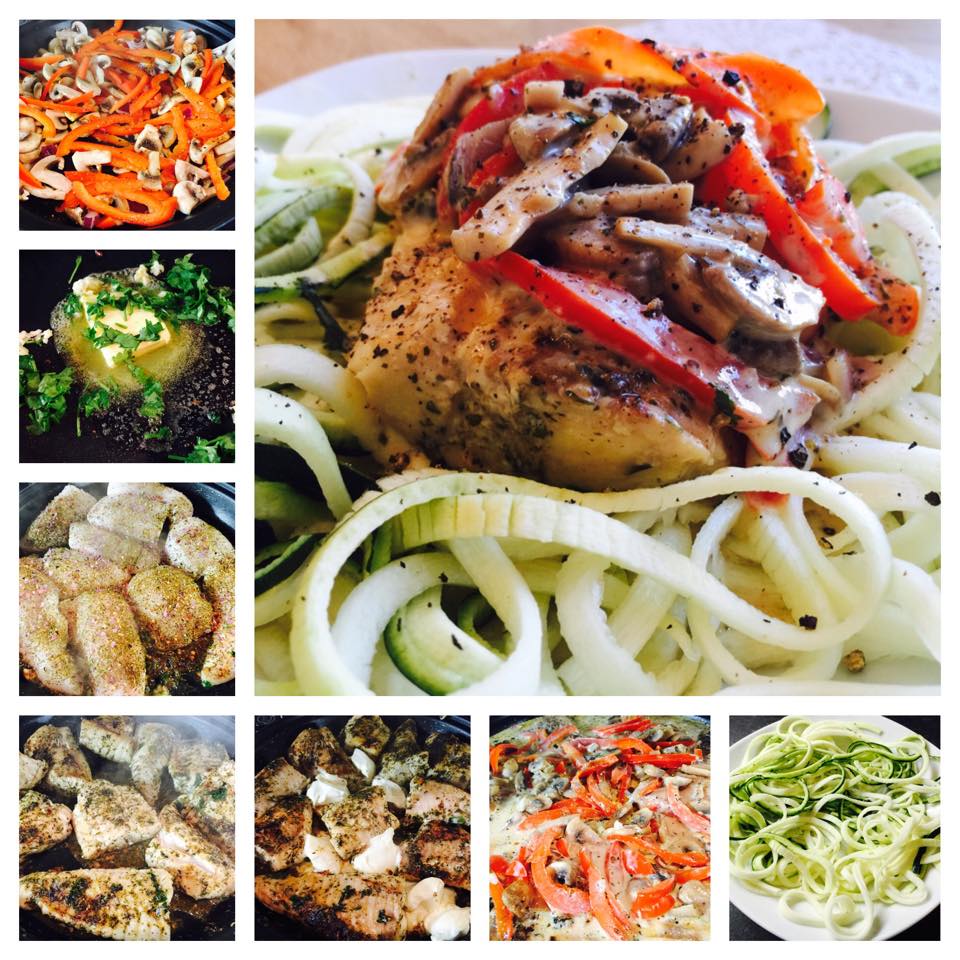 Byrjaði á að steikja sveppi og papriku upp úr smjöri.