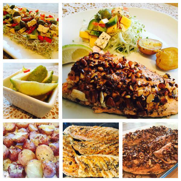 Lax með litríku meðlæti.